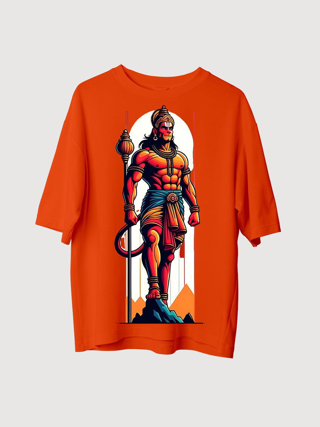 Embrace strength and devotion with the "Bajrangbali Hanuman Graphic T-Shirt." This vibrant orange t-shirt showcases a powerful and artistic depiction of Lord Hanuman, symbolizing courage, devotion, and protection. Designed with intricate details, the artwork embodies divine energy, making it a must-have for spiritual seekers and Hanuman devotees.
