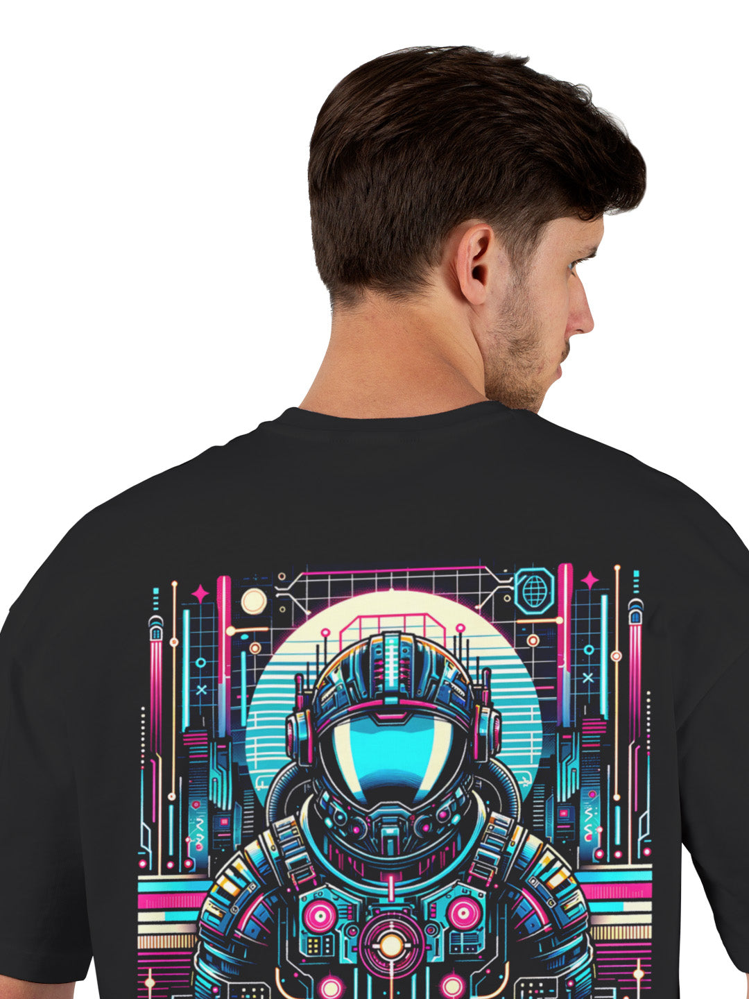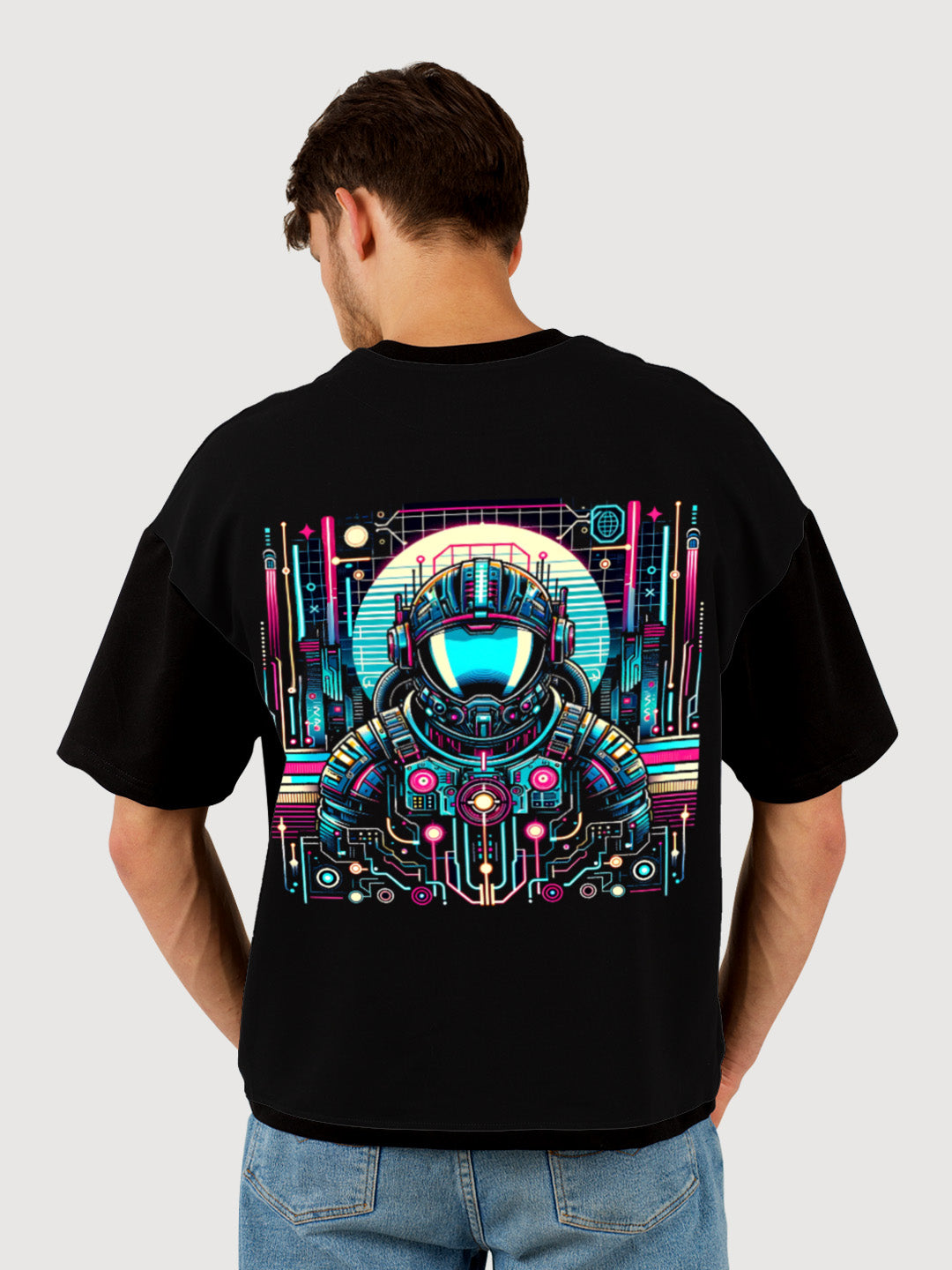 Made from 100% premium cotton, this oversized t-shirt ensures maximum comfort and durability. The high-quality screen printing technology keeps the colors vivid and intact even after multiple washes. Whether you’re a space enthusiast, tech lover, or someone who appreciates bold fashion, this t-shirt is your go-to statement piece.